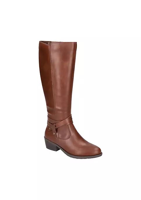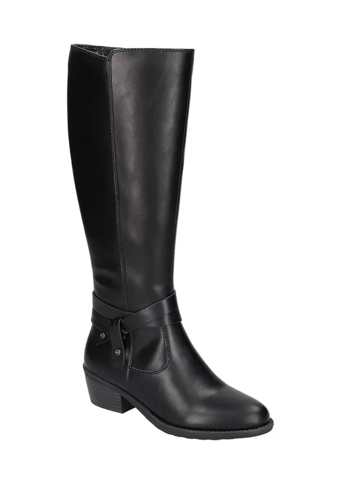 The Anissa by Easy Street tall boot has a harnessed ankle strap detail that will bring a versatile styling to any outfit. A full-length inside zipper and stretch for fit elastic goring. Designed on a low block heel and lightweight outsole for added style and comfort.