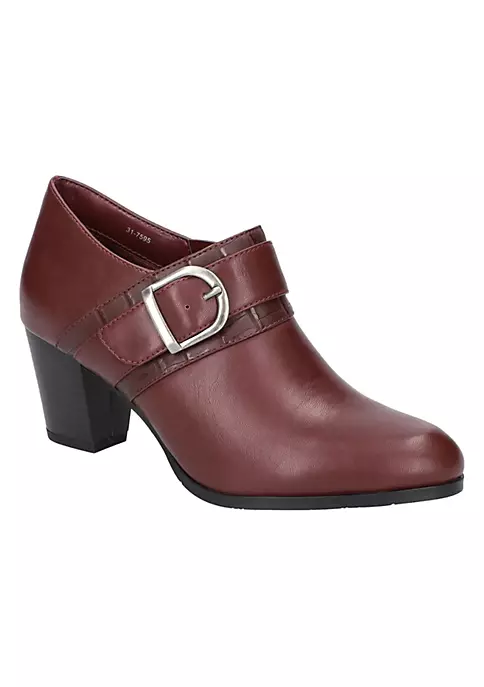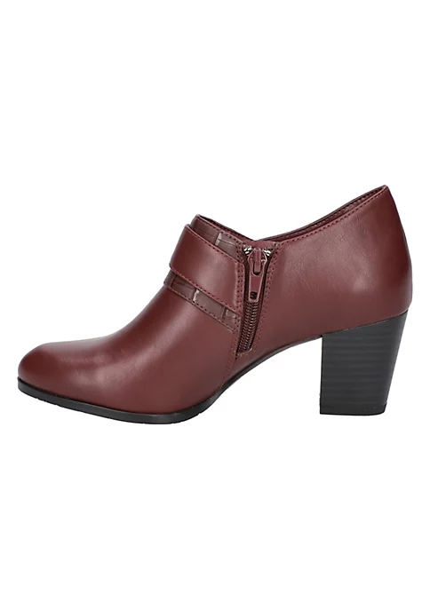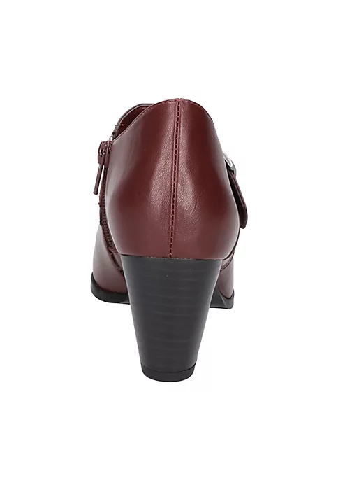 Step in comfort and stay on trend with the Della block heel dress shootie by Easy Street. Where looking good feels great. The multi material overlay and fashion buckle ornamentation will add to any outfit. Heel to toe padded insole for all day comfort with an Easy Flex outsole and inside zipper.