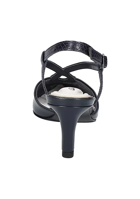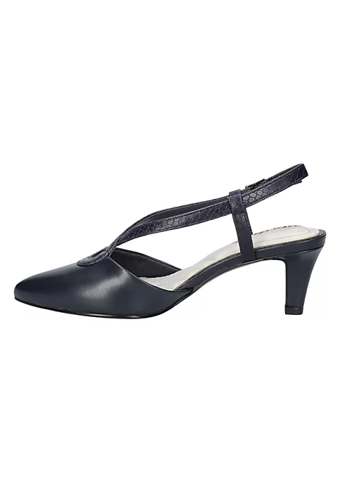 Make a subtle style statement with the Finesse sling pump by Easy Street. The fashionable tear drop upper design seamlessly transitions into an adjustable sling back strap and add a dash of elegance with every step. Padded heel to toe comfort on the Easy Flex outsole.