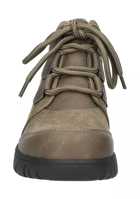 The Ronnie is an on trend waterproof bootie from Easy Dry by Easy Street offers the perfect mix of style and comfort. Designed on a new mini sport lug outsole, the Comfort Wave Construction provides support for you to take this sport casual bootie everywhere. An inside zipper and lace up styling will make you want to pair this style with all of your favorite outfits.