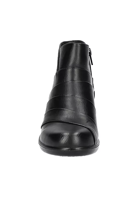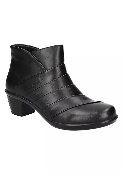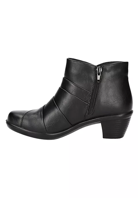 The Sonya bootie by Easy Street is all about the fashionable overlay detail upper. The Comfort Wave construction is lightweight and styled on a fashionable block heel. An easy on/off inside zipper and enhanced with the Easy Motion by Easy Street ultra-light insole for all-day comfort.