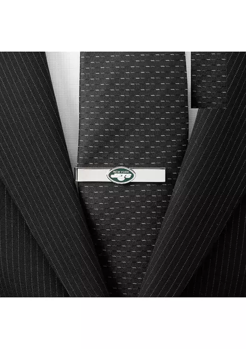 Dress like a champion with the New York Jets Tie Bar, an accessory to show your team spirit with sophisticated style. The shiny, silver plated sliding tie bar featuring the New York Jets team logo makes it easy to declare your team allegiance front and center. Dress up for game day, or rep your favorite team any day of the week to make sure your friends and colleagues don’t forget where your loyalty lies. Officially licensed NFL tie bar.
