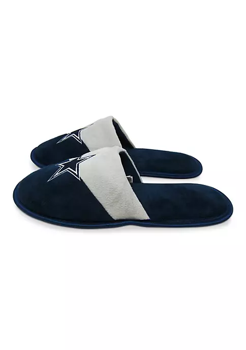 Perfect for a leisurely game day at home, these Color Block Logo slippers are a must-have for any dedicated Dallas Cowboys supporter. These comfy kicks provide a soft, warm feel and show off vibrant Dallas Cowboys graphics and colors to boot. You’ll love putting on these slippers right after waking up, especially on any cold morning. Available men’s size medium (9-10) and men’s size large (11-12). Officially NFL licensed product. Upper material is made of Polyester, filling material is made of expandable Polyethylene/Polyurethane foam and sole material is made of TPR with fabric. Surface washable.