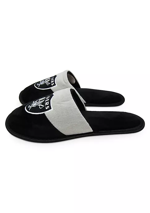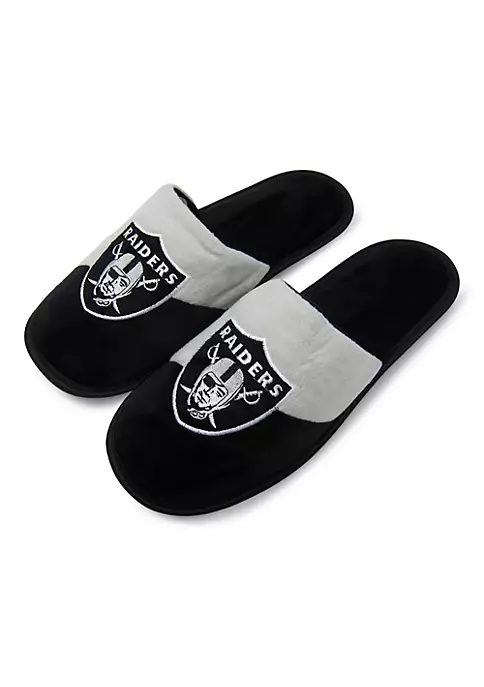 Perfect for a leisurely game day at home, these Color Block Logo slippers are a must-have for any dedicated Las Vegas Raiders supporter. These comfy kicks provide a soft, warm feel and show off vibrant Las Vegas Raiders graphics and colors to boot. You’ll love putting on these slippers right after waking up, especially on any cold morning. Men’s size large (11-12). Officially NFL licensed product. Upper material is made of Polyester, filling material is made of expandable Polyethylene/Polyurethane foam and sole material is made of TPR with fabric. Surface washable.